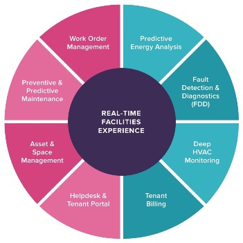 Our solution embeds distributed processing power, using an IoT approach, in conjunction with real-time connectivity as well as Big Data Analytics, AI and Machine Learning, resulting in a system that interprets performance, generates insights and enables predictive operations. Cloud computing can then be used to extend this transparency across an entire portfolio. The Facilio solution should neither be looked as a single isolated solution or a modular one. In my opinion, the more accurate view of our product is as a facilitating, monitoring and synergy generating platform, which transforms the passive operations of the previous generation of technologies into an interactive, agile and predictive iteration of themselves. The basis of our approach is not to replace but to transform existing automation, by unlocking potential. Our product suite addresses key pain-points and offers a three-pronged real-time and data-led solution that includes: